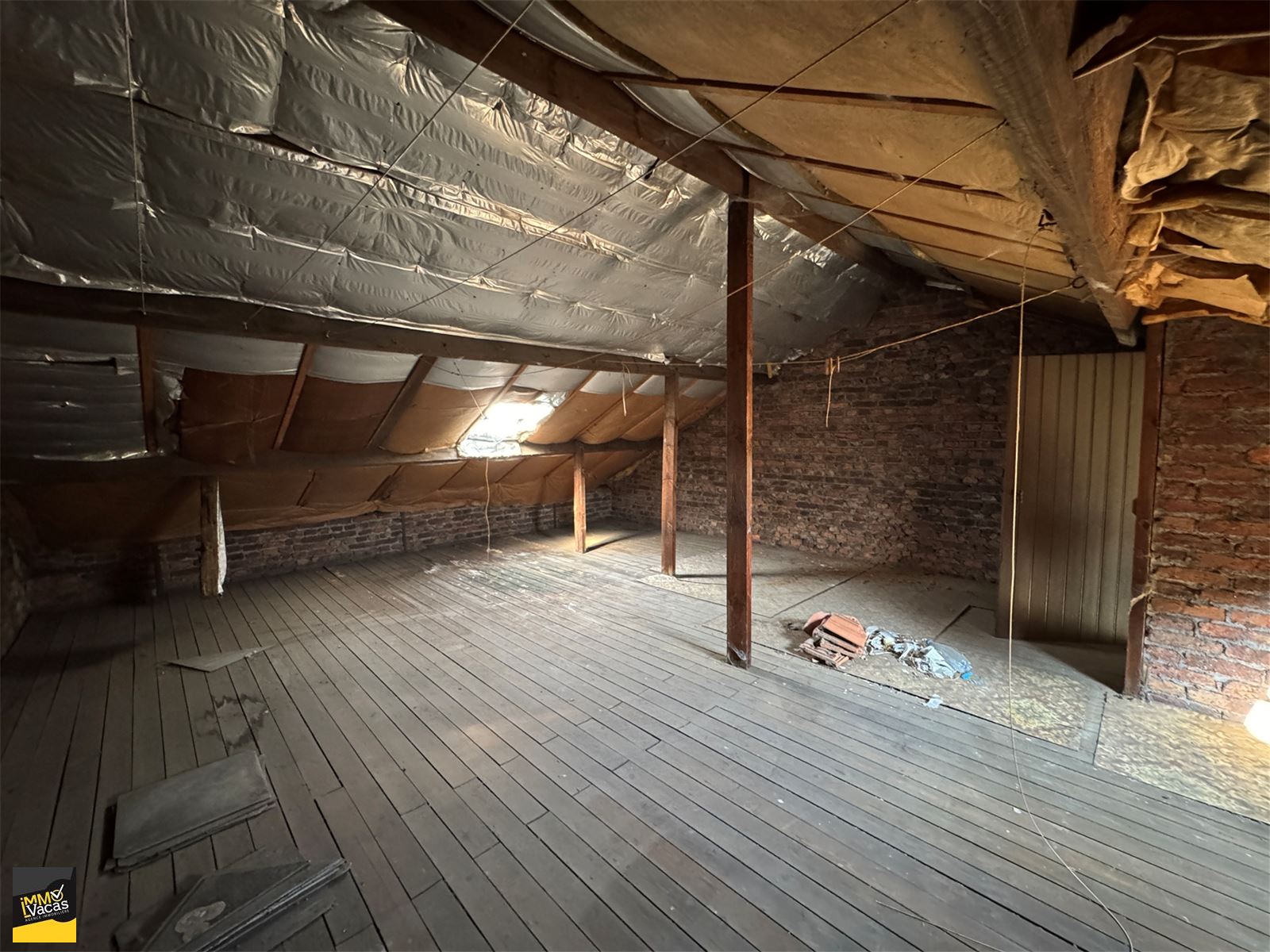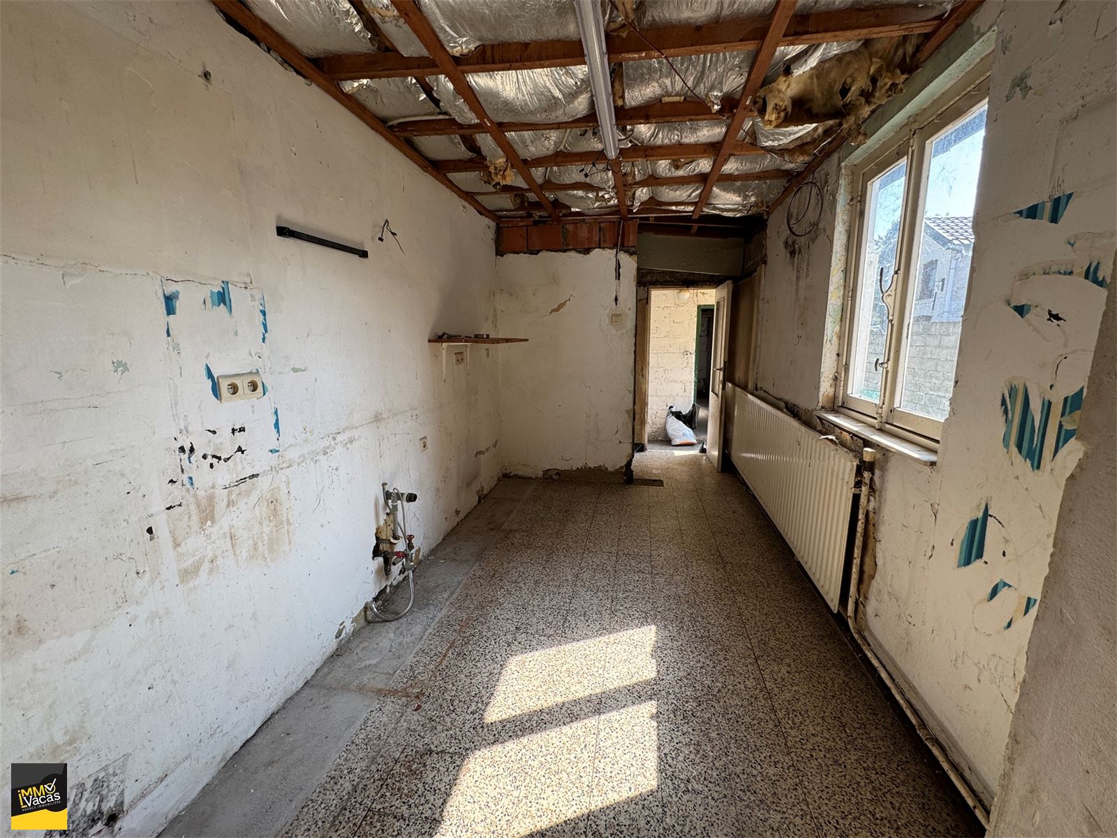 Huy/Tihange Rue de la Campagne 23, spacieuse maison à rénover, 2 ch (16 m2 x2) + grenier aménageable 33 m2 (poss 2 ch supplem), SDB, Hall, living 35 m2 + espace cuisine et véranda 18 m2. garage 42 m2 en longueur, parking devant la maison, DV en PVC, volets, jardin 6 ares 55 ca bien exposé sud. PEB à G, RC 466€, belle situation, proche de toutes commodités et au calme.