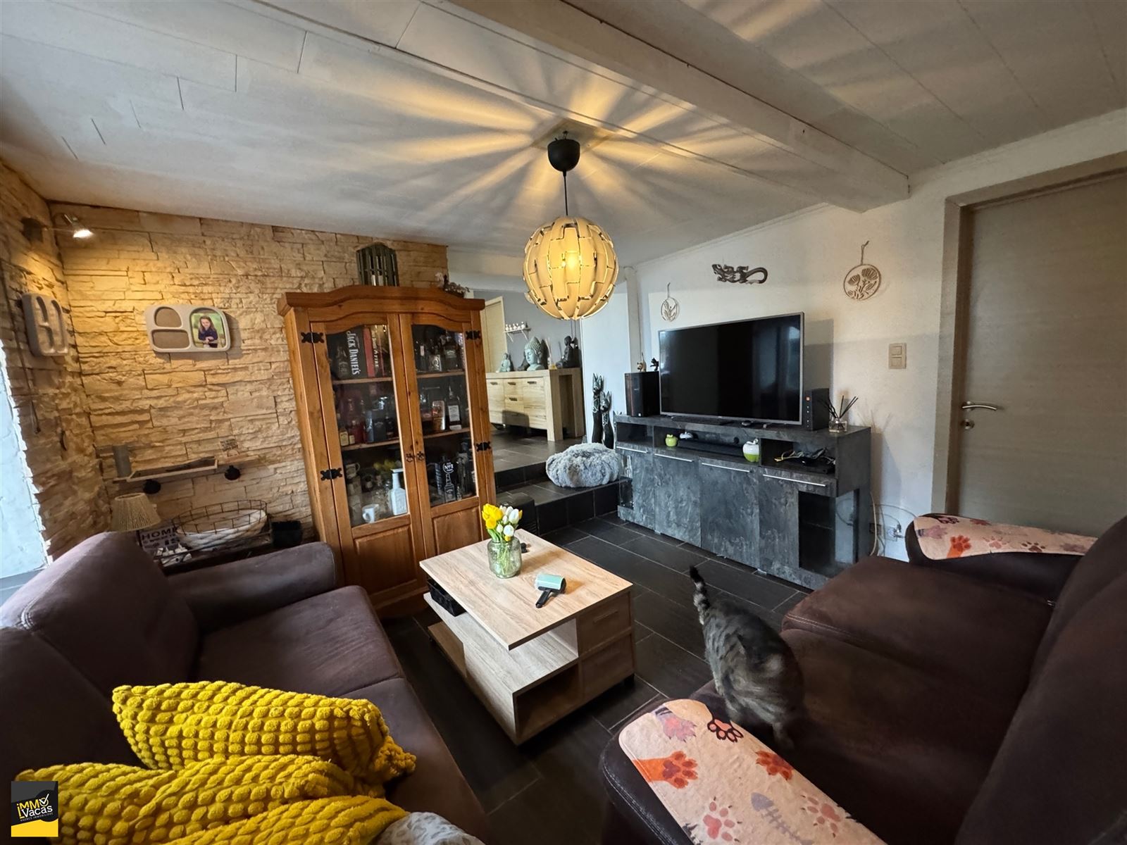 Villers-le-Bouillet, rue des Jardins 6, située au calme dans un cul de sac, jolie maison 2 ch, hall, salon, placard, sàm, cuis équipée neuve, SDD (italienne),cave bien saine.