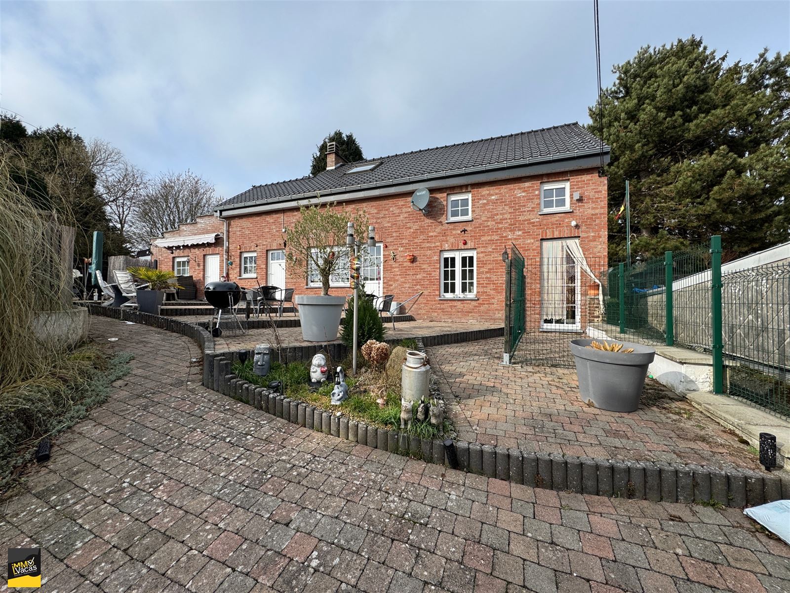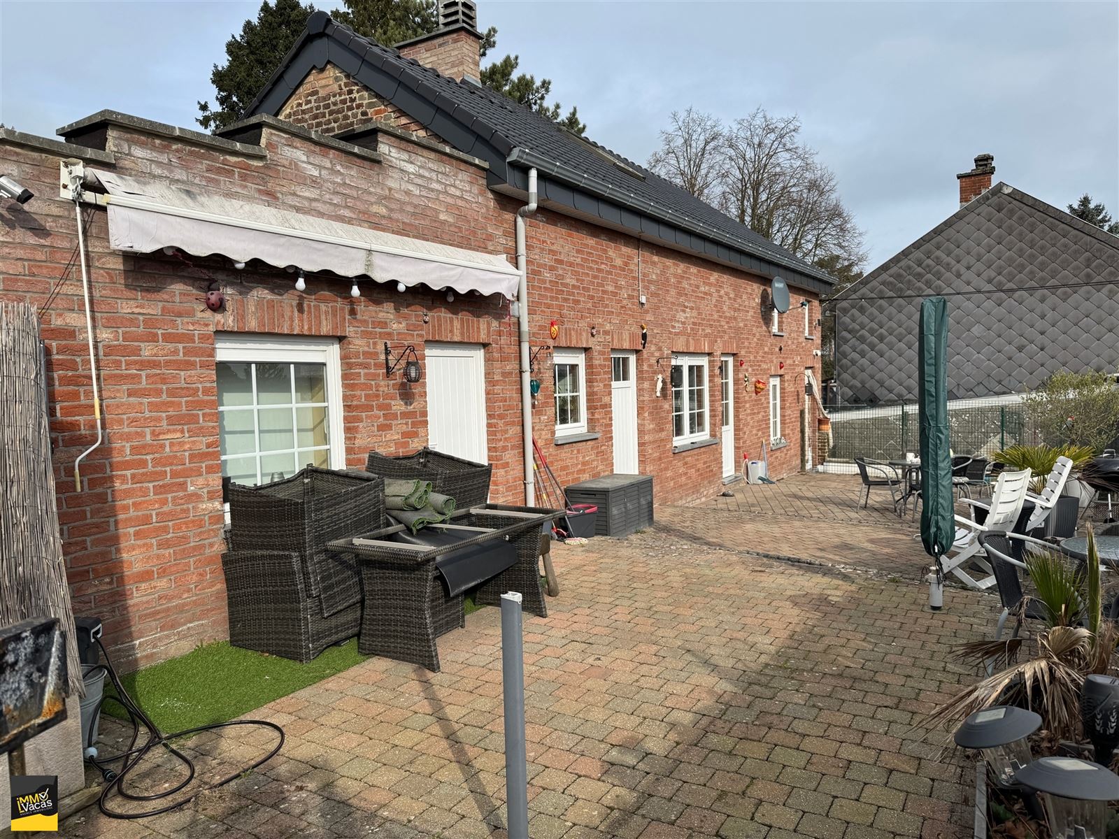 Buanderie, douche et WC dans l'annexe. Atelier, garage 1 voiture + 2 parkings extérieur, jardin, terrasse TB exposée et aménagée (luminaires, klinkers..).