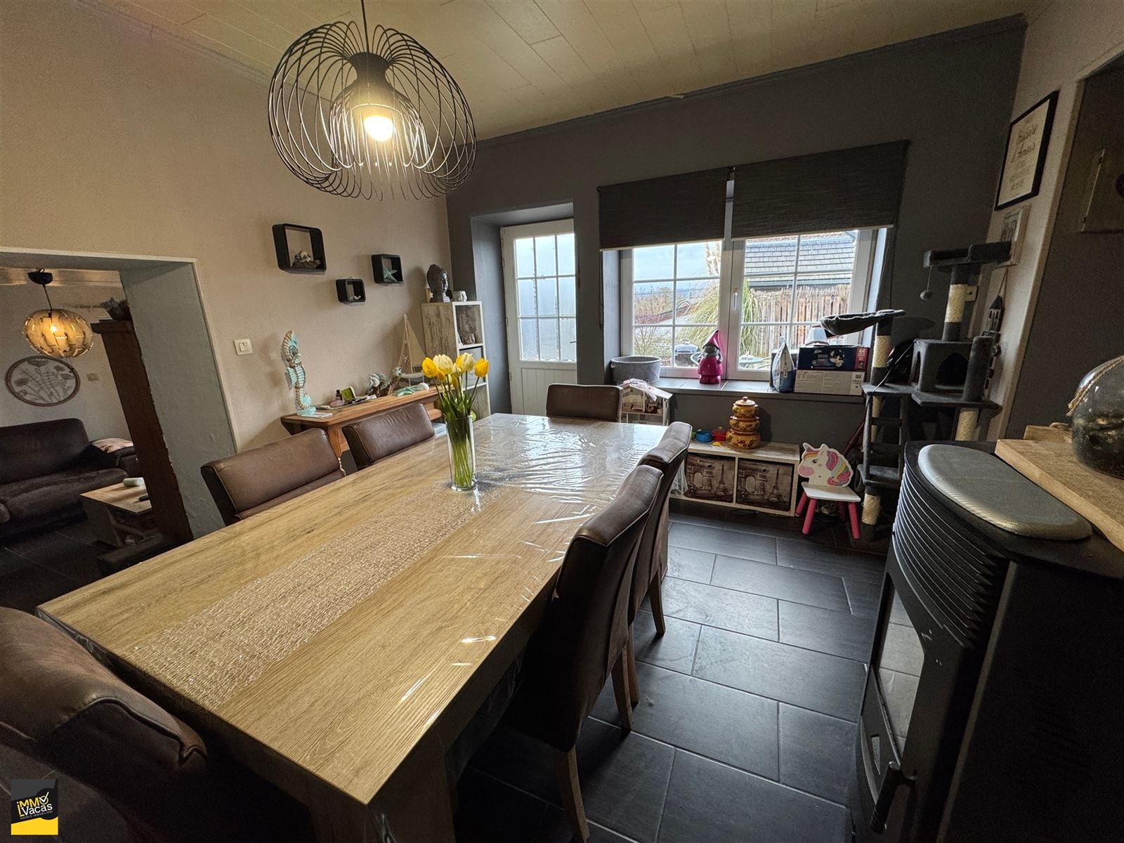 Toit neuf, électricité conforme,DV en PVC, chauffage à pellets, RC 411€, PEB à E, un petit havre de paix, idéal pour un jeune couple.