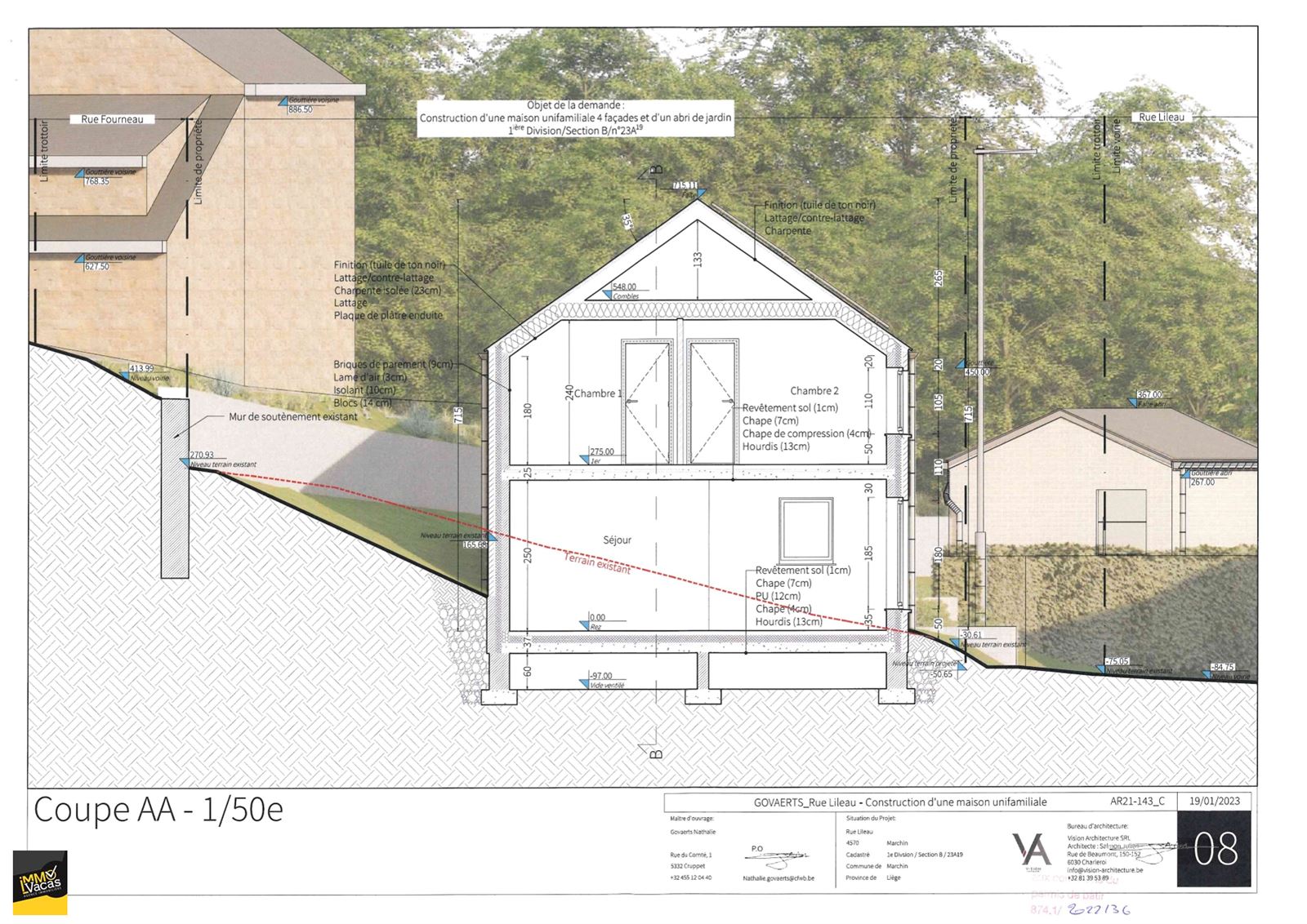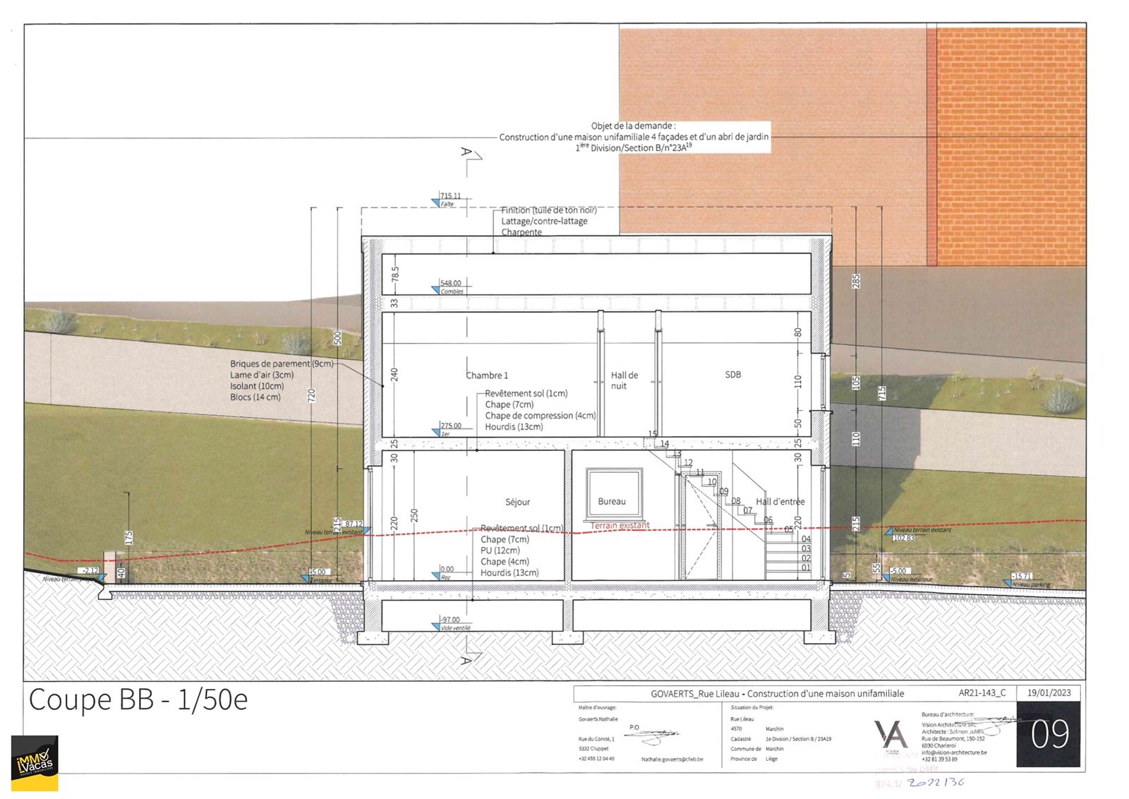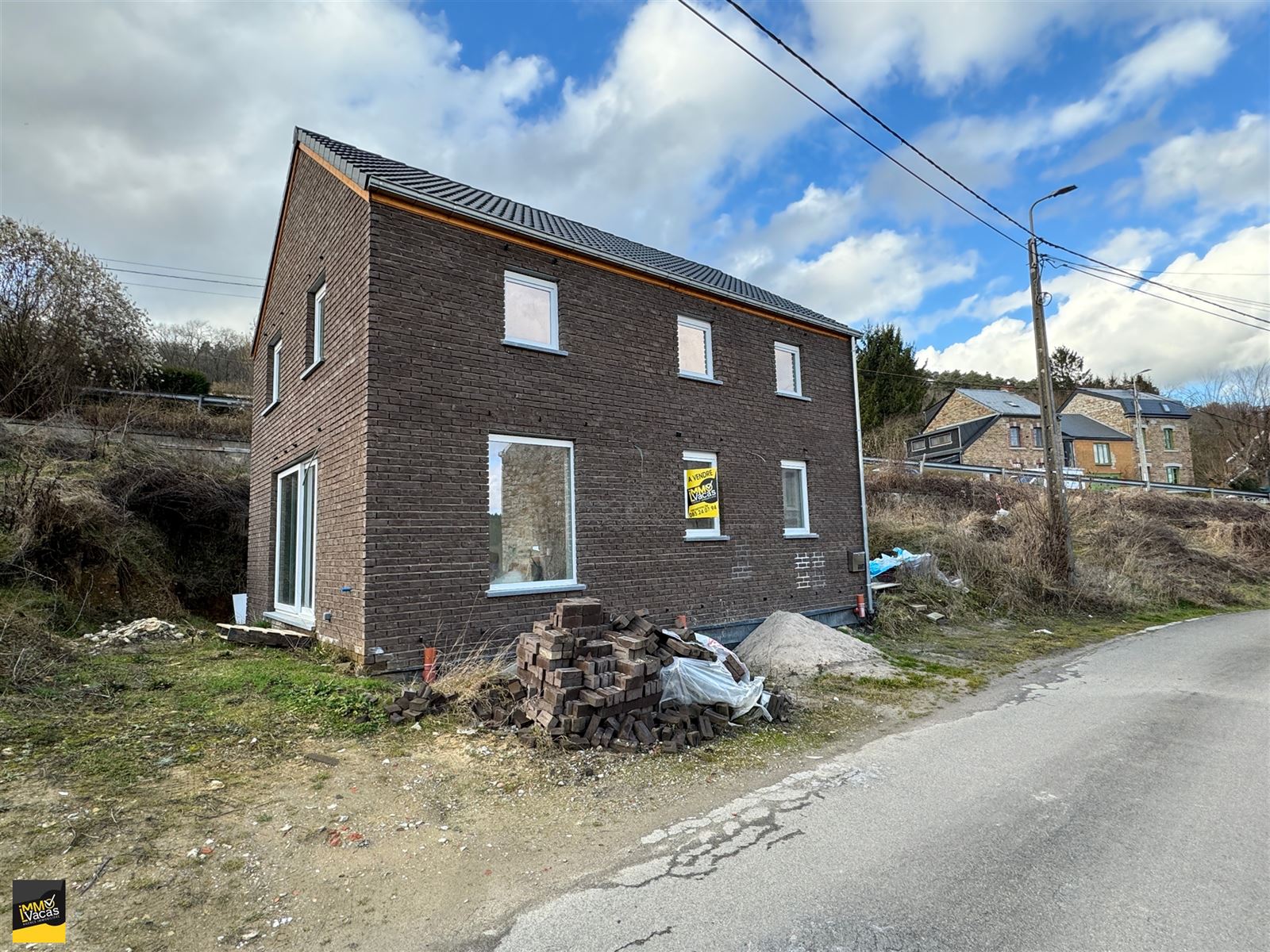 Marchin, Rue Lileau 55 A, nouvelle construction 2025 en cours de finitions, sur un terrain de 476 m2, future terrasse plein sud. Jardin, abris de jardin prévu.