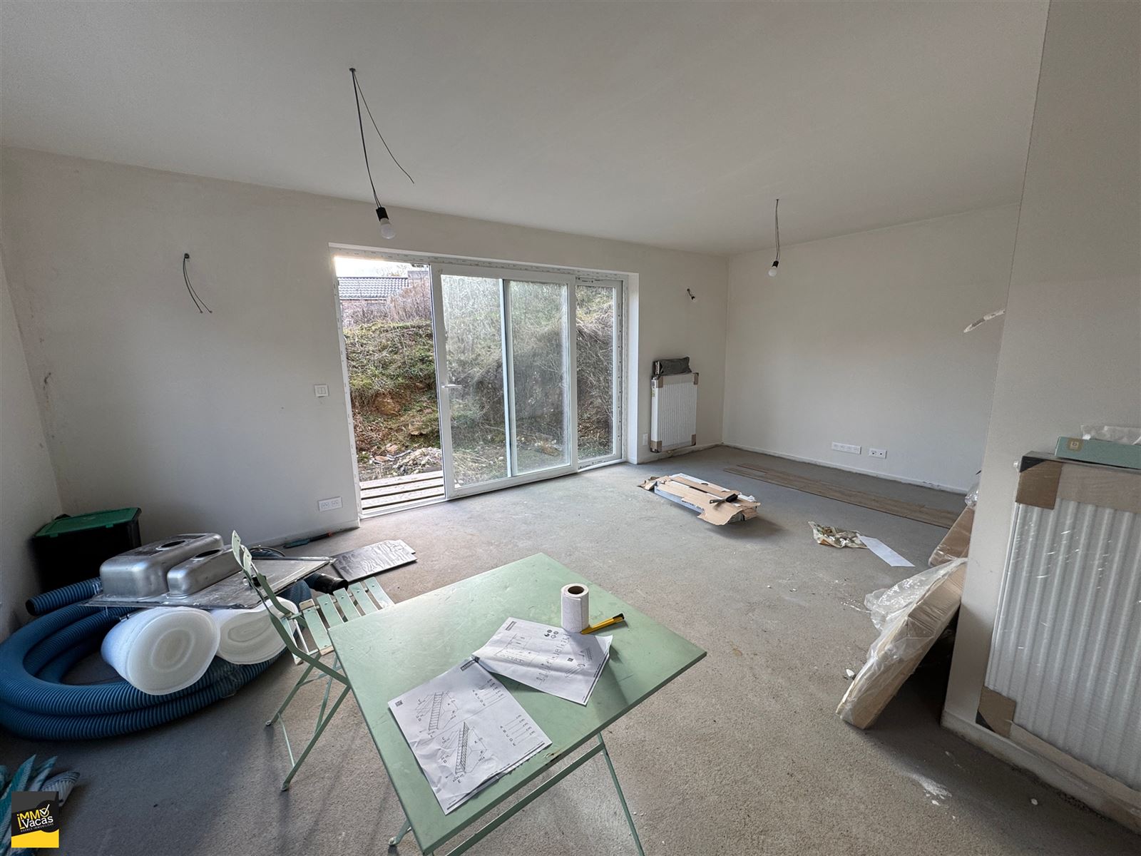 DV en PVC, prévu CC gaz citerne, radiateurs placés mais pas encore la citerne. Endroit calme.